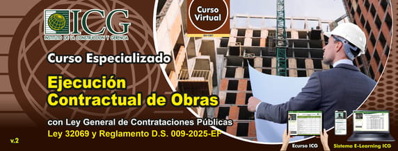 El Instituto de la Construcción y Gerencia ICG, tiene el agrado de invitar a los profesionales y alumnos a participar en el Curso Especializado "Ejecución Contractual de Obras, con Ley General de Contrataciones Públicas, Ley 32069 y Reglamento D.S. 009-2025-EF", curso valioso e indispensable para el Ejercicio Profesional.