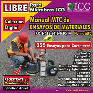 ICG presenta la colección digital, el contenido de ha sido digitalizado para el acceso a los Miembros ICG. Disponemos de CD-05 Manual MTC de Ensayos de Materiales y CD-06 Hidraulica